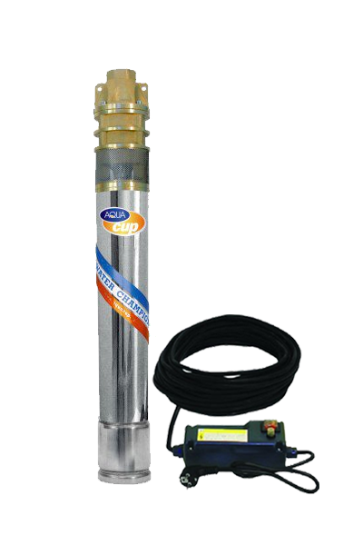 Ponorné čerpadla o průměru 3" (75 mm) a 4" (96 mm) s kabelem o délce 20 nebo 30 metrů a ovládací elektroskříní v provedení motoru 230 V.
