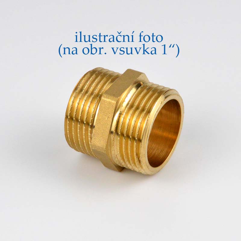 Mosazná vsuvka s vnějšími klasickými trubkovými závity o rozměrech G 1/4" (DN 8) až G 2" (DN 50). Vsuvky jsou použitelné do maximální provozní teploty 110 °C a pro maximální provozní tlak 10 bar (PN 10) u vsuvek do rozměru 6/4" (1"1/2) a 8 bar (PN 8) u vsuvek 2".
